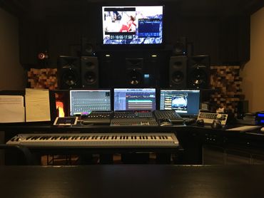 JBL LSR 308 X 5 with matching sub for Surround mixing.
